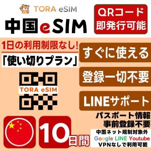 中国 eSIM | 10日間 | 3GB 使い切り | 最短15分QRコード自動発行(24時間) 即日発行 | 日本で設定OK 中国ネット規制対象外 Google LINE YouTube VPN なしでOK