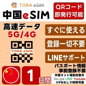 中国 eSIM | 1日間 | デイリー(0.5GB/日) |最短15分QRコード自動発行(24時間) 即日発行 |日本で設定OK 中国ネット規制対象外 Google LINE YouTube VPN なしでOK