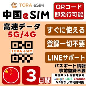 中国 eSIM | 3日間 | デイリー(1GB/日) |最短15分QRコード自動発行(24時間) 即日発行 |日本で設定OK 中国ネット規制対象外 Google LINE YouTube VPN なしでOK