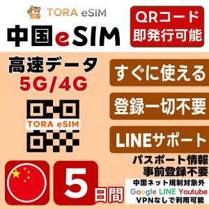 中国 eSIM | 5日間 | デイリー(0.5GB/日) |最短15分QRコード自動発行(24時間) 即日発行 |日本で設定OK 中国ネット規制対象外 Google LINE YouTube VPN なしでOK