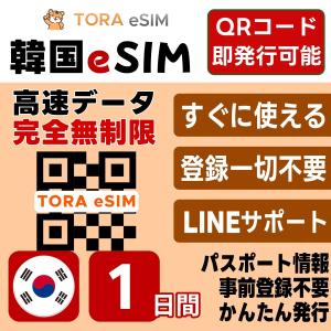 韓国 eSIM | 1日間 | 無制限 | 最短15分QRコード自動発行(24時間) | 高速データ 5G/4G 即日発行 テザリング可 日本で事前設定OK LINEサポート