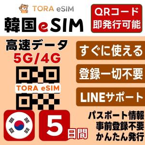韓国 eSIM | 5日間 | デイリー(0.5GB/日) | 最短15分QRコード自動発行(24時間) | 高速データ 5G/4G 即日発行 テザリング可 日本で事前設定OK LINEサポート