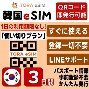 韓国 eSIM | 3日間 | デイリー(0.5GB/日) | 最短15分QRコード自動発行(24時間) | 高速データ 5G/4G 即日発行 テザリング可 日本で事前設定OK LINEサポート
