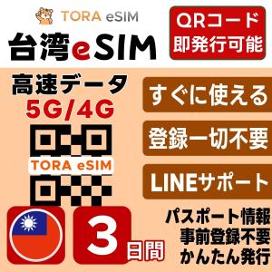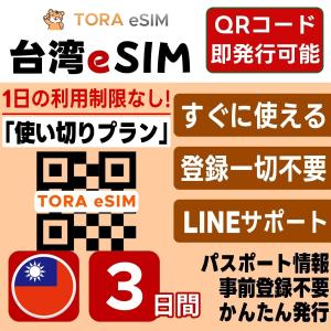 台湾 eSIM | 3日間 | デイリー(0.5GB/日) | 最短15分QRコード自動発行(24時間) | 高速データ 5G/4G 即日発行 テザリング可 日本で事前設定OK LINEサポート