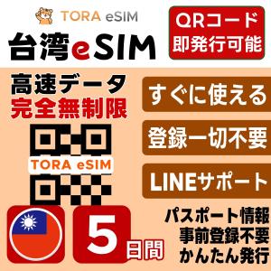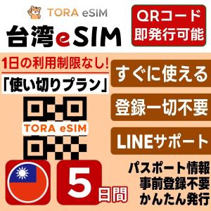 台湾 eSIM | 5日間 | 5GB 使い切り | 最短15分QRコード自動発行(24時間) | 高速データ 5G/4G 即日発行 テザリング可 日本で事前設定OK LINEサポート