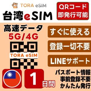 台湾 eSIM | 1日間 | デイリー(1GB/日) | 最短15分QRコード自動発行(24時間) | 高速データ 5G/4G 即日発行 テザリング可 日本で事前設定OK LINEサポート