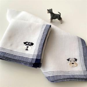 シュナウザー雑貨 麻 リネンハンカチ シュナウザー 刺繍 犬雑貨 プチギフト 挨拶 お誕生日プレゼント 入学 卒業 転勤 引っ越し