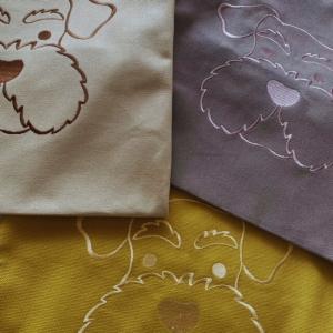 シュナウザー雑貨 カラー帆布トートバッグ 刺繍バッグ 犬雑貨 シュナウザーの顔 おしゃれ 可愛い プレゼント お誕生日 入学 転勤