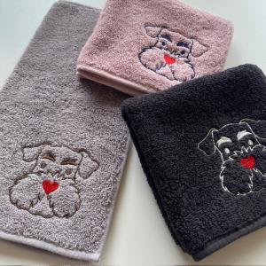 シュナウザー雑貨 タオルハンカチ 犬雑貨 今治タオル 刺繍 プチギフト お誕生日 お礼 プレゼント ハート 卒業 転勤 返礼品