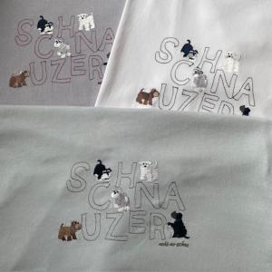 シュナウザ―雑貨 tシャツ かわいい5匹のシュナウザー刺しゅう ハイポーズ 犬雑貨 男女兼用 ドッグイベント プレゼント 誕生日 転勤