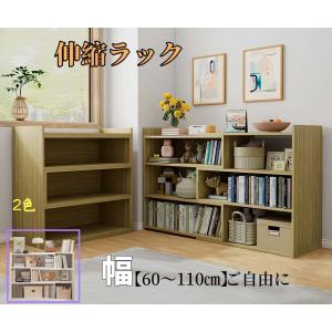 本棚 大容量 伸縮ラック シェルフ 収納棚 ディスプレイ収納 木製 ホワイト 白 クルミ色 胡桃 幅60〜110cm 奥行き30cm 高90cm ドライバー付き 3003-2