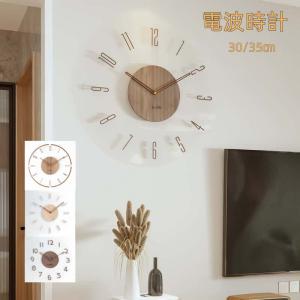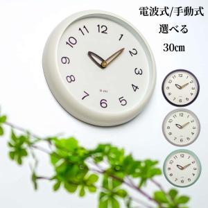 掛け時計 電波時計 クリーム 直径30cm かわいい 壁掛け時計 北欧 おしゃれ 音がしない ウォールクロック 韓国 人気