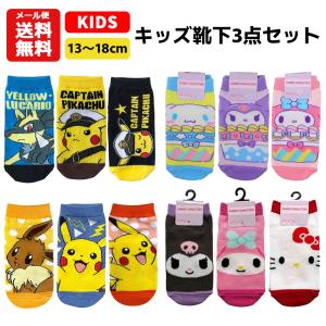 メール便送料無料 キッズ 靴下 キャラクター 3足セット 13〜18cm | ポケモン ピカチュウ ルカリオ イーブイ サンリオ クロミ マイメロディ キティ