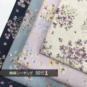 綿麻 シーチング 生地 布 花柄 スミレ モーメント 50cm単位 コットンリネン