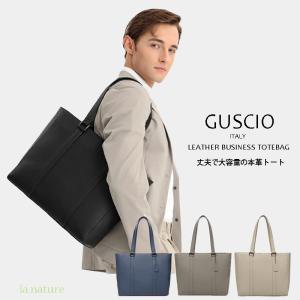 フレッシャーズ 本革レザートートバッグ GUSCIO ITALY ビジネス シンプル 撥水 耐久 2WAY A4 14インチPC対応 メンズ レディース ネイビー ブラック