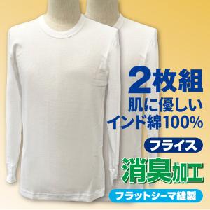 肌着 下着 インナー シャツ メンズ 男性用 綿100% 長袖 丸首 2枚組 消臭加工 ヤマダ