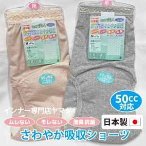 尿漏れパンツ 失禁パンツ 吸水ショーツ 女性用 尿もれ にょうもれ 深ばき 綿混 抗菌消臭 水玉 50cc 日本製 レディース ヤマダ