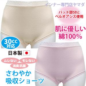 尿漏れパンツ 女性 失禁パンツ 吸水ショーツ 女性用 尿もれ にょうもれ 綿100% 抗菌防臭 消臭 30CC 日本製 レディース ヤマダ