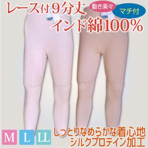 9分丈 女性用 レース付 ボトムインナー ズボン下 綿100% 婦人用 肌着 下着 レディース 保湿加工 ヤマダ