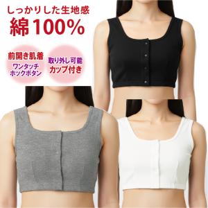 前開き 介護 肌着 レディース 女性用 ワンタッチ ブラジャー 下着 ブラトップ ハーフトップ ホックボタン 取り外し可能カップ付き 入院 手術 綿100% ヤマダ