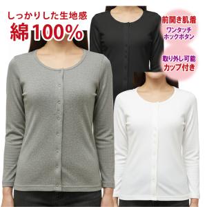 前開き 介護 肌着 レディース 女性用 ワンタッチ 前開き 肌着 下着 婦人用 長袖 ホックボタン 取り外し可能カップ付き 介護用品 入院 手術 綿100% シャツ ヤマダ