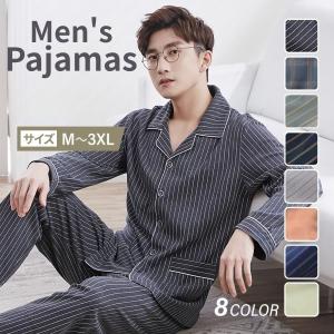 パジャマ メンズ 安い 上下セット 長袖 綿 ルームウェア 夏 前開き 秋 ゆったり 薄手 冬 春 暖か おしゃれ 大きいサイズ 部屋着 プレゼント ストライプ 無地