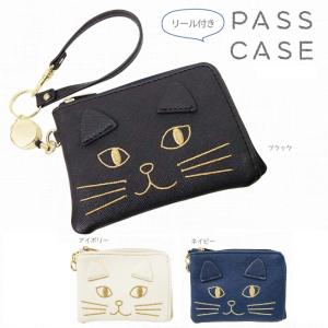 定期入れ(パスケース) ネコ顔 ポーチ兼用 リール付