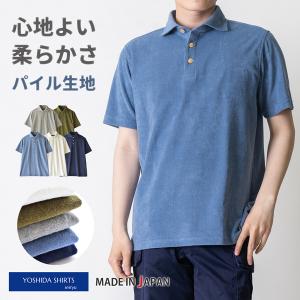 ポロシャツ メンズ 半袖 日本製 パイル生地 ふんわり柔らかい ビジネス 白 ホワイト ネイビー ブルー カーキ グレー 2022-PS11