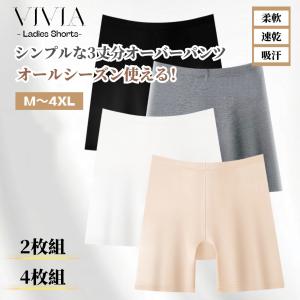 ロング丈ショーツ 大きいサイズ オーバーパンツ ハイウエスト 3丈分 下着 インナー ストレッチ シームレス M L LL 3L 4L 5L 柔らか肌着 福袋 2枚組 4枚組 DA14