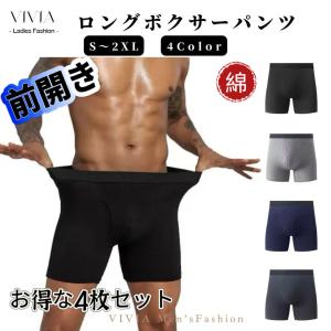 ロングボクサーパンツ 前開き 紳士下着 メンズ パンツ 大きいサイズ ストレッチ コットン 綿 シームレス 吸汗速乾 伸びる S M L LL 3L まとめ買い 2枚組 4枚組