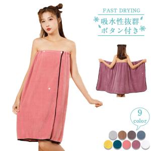 \2点購入で200円off!/ラップタオル 大人用速乾 ボタン付き 巻きタオル おしゃれ スカートタオル バスローブ レディース かわいい バスタイム プール 美容院