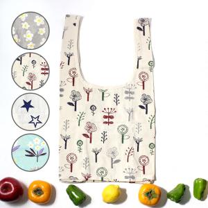 マルシェバッグ エコバック おしゃれ 折りたたみ マチ付き 花 綿 軽量 大容量 インド綿 かわいい 北欧 ナチュラル 生成り 洗える