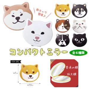 コンパクトミラー 鏡 小さい 拡大鏡 かがみ 手鏡 アニマル 猫 犬 白猫 ハンドミラー アニマルコンパクトミラー