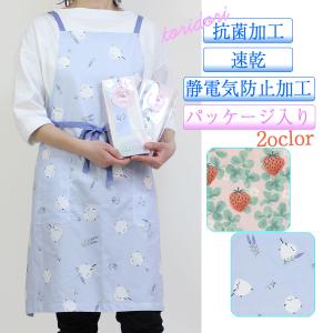 エプロン おしゃれ いちご柄 シマエナガ 軽量 ショート丈 短い 速乾 抗菌加工 静電気防止加工 母の日 前結び 80cm丈 ショートエプロン ギフトボックス入り