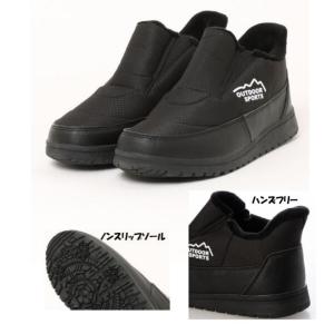 手を使わずに履ける 防水ハンズフリー ショートブーツ OUTDOOR SPOOTS FKR1138 黒 婦人 レディース 学生靴 防寒 滑りにくい防滑底 ハーフ ブーツ 通勤 通学