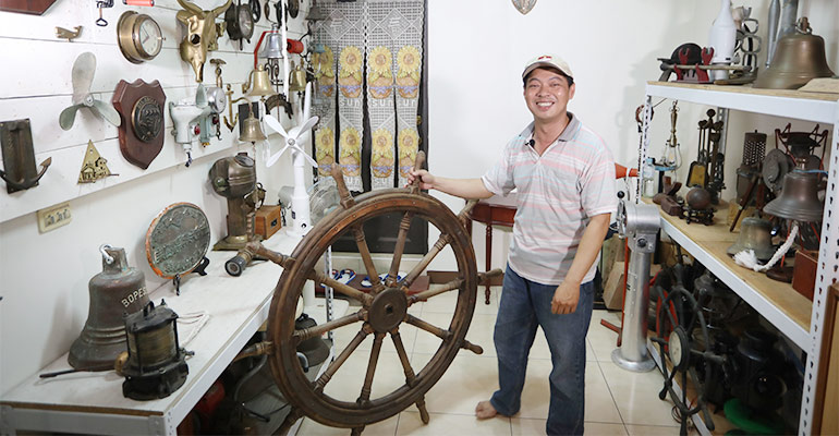 很難想像,有人會喜歡大船舵,但樂淘會員蔡先生卻迷死了。本身是個航海迷,喜歡收集跟航海相關的物件。這次開箱的帆船用大船舵,歷史悠久,至少50年以上,而且這種「10柄」的船舵非常少,能買到這個,讓蔡先生的臉上不時露出開心笑容。此外,他還分享了一個8柄的大船舵,是從以前航行於北愛爾蘭大不列顛群島的船隻所留下來的,全銅打造,全台灣就這個喔~~