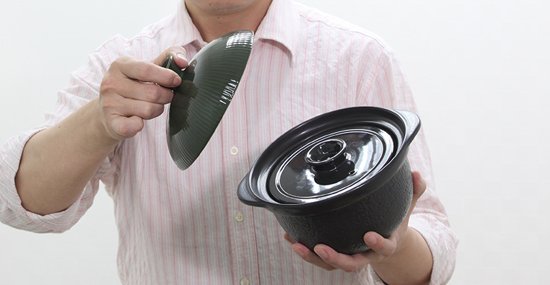 這是一種土鍋,有綠色與紅色二種設計,小巧但有質感,放在廚房也是一幅美麗風景。土鍋由於蓄熱性好,加上可以吸收掉多餘水份,很受婆婆媽媽喜愛,拿來煮飯好吃又Q彈,「時短釜」自然也是具備這樣的「基本」功能。而從「時短釜」這個字義上來看,可知道最大特色在於縮短烹煮的時間,為了達到這樣功能,它在設計與材質上有些小心機。