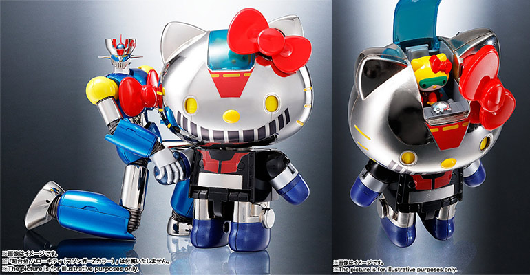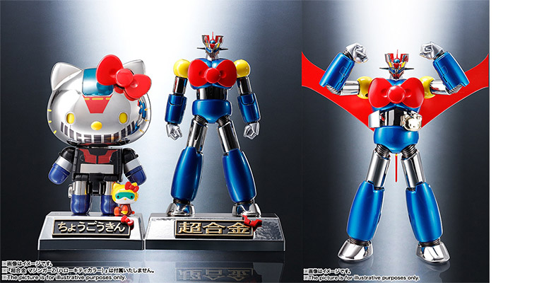 2014年,Bandai推出的大受好評「超合金」系列40週年,而當時Hello Kitty也是40週年,在雙重紀念之下,於是推出了「超合金Hello Kitty」。因為特別,這款一上市就刮起風潮。二年後,為延續好評,雙品牌玩得更大了,將Hello Kitty與無敵鐵金剛角色互換了,不僅推出105mm高的「超合金Hello Kitty (無敵鐵金剛配色)」,也推出135mm高的「超合金無敵鐵金剛(Hello Kitty配色)」,希望為Hello Kitty招來男性玩家,也希望為本來多為男性粉絲的無敵鐵金剛,多吸納一些女性粉絲。