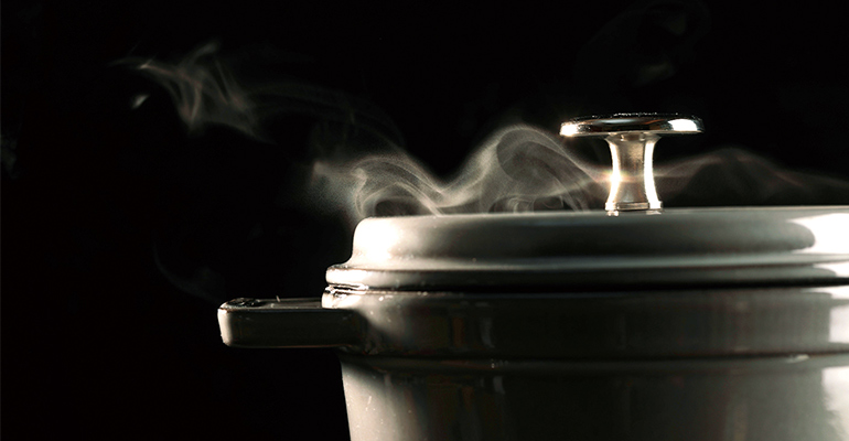 2. 瓦斯爐開火,以中火加熱,待鍋蓋上的氣孔冒出煙時,關火,靜置20分鐘再開蓋。