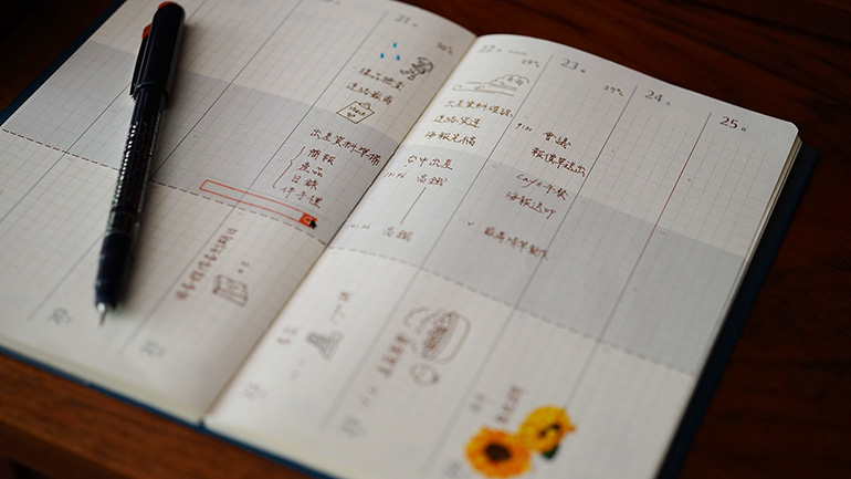 「多功能音樂尺」是一位教授樂理的音樂老師所設計,它特色就在於上面有6個圓孔,可讓你隨心畫出6條平行線或是五線譜,如果跳著孔畫還可以畫出不同行距的線條,好處是讓人可以不受筆記本形式,想畫五線譜音符或練習英文書法,都相當實用。「Brownie 手帳」曾獲日本總選舉no.2,可同時橫式與直式書寫,提供二種不同的情境記事,又提供以月為單位的時間軸,使用起來自由度相當高。