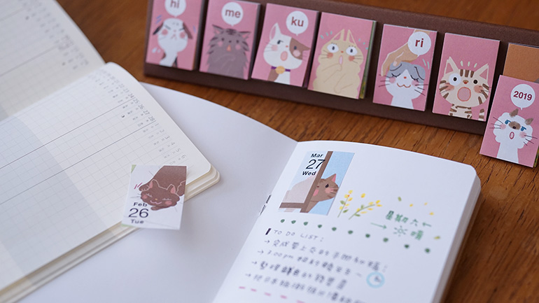 最後推薦的「HIMEKURI每日貼曆」,榮獲了日本文具大賞,這在日本相當受歡迎,除了貓咪、文具等圖案可愛之外,它是結合了日曆與週曆的便利貼,可黏貼在任何地方,如果貼在筆記本上,就立即變成手帳,而喜歡手作的人,將之貼黏在果醬或手工製品上,就成了製造日期的標示。