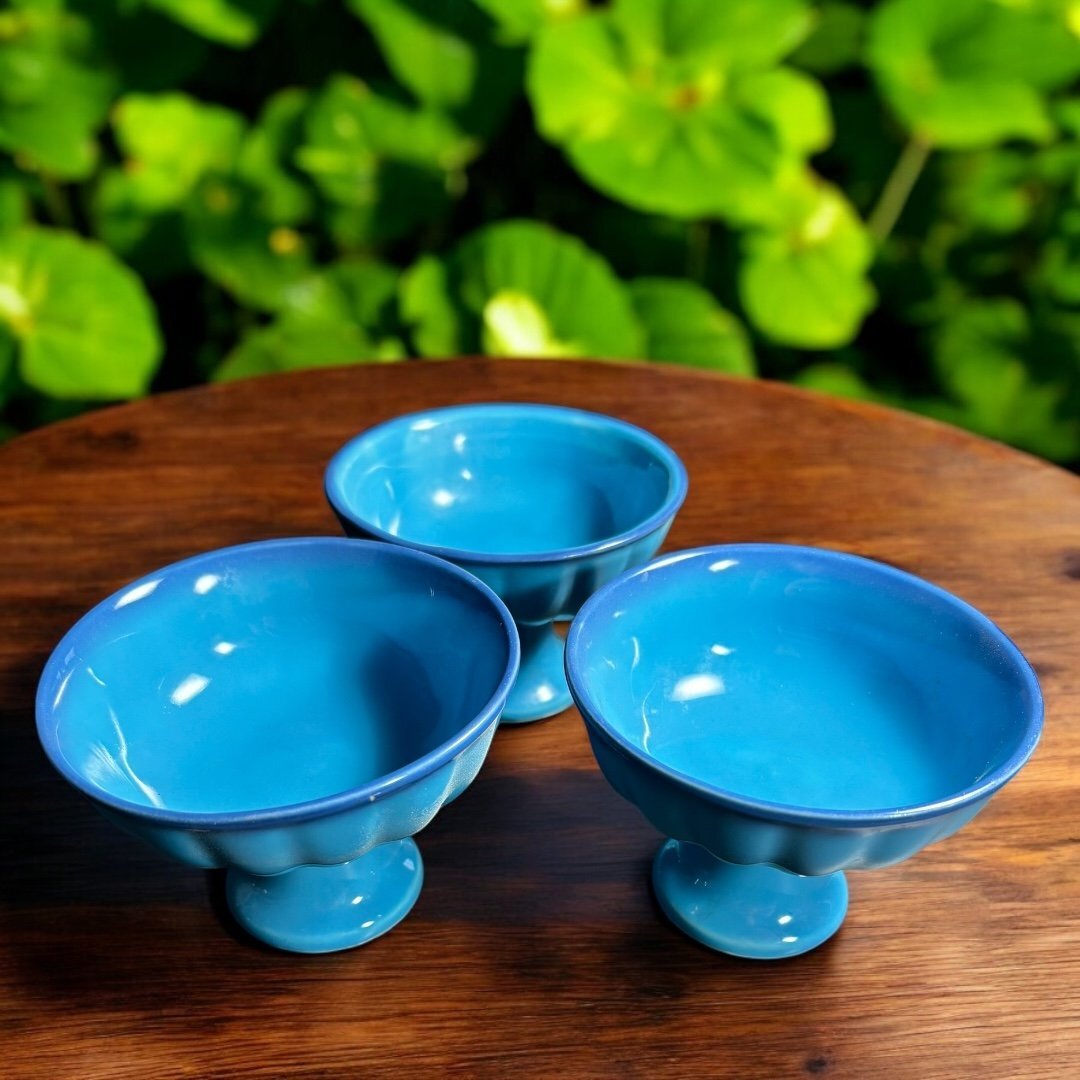 【FU10】杯 盃 ティファニーブルー 陶器 3客セット 菓子皿 小物入れ 飾り 食器 水色