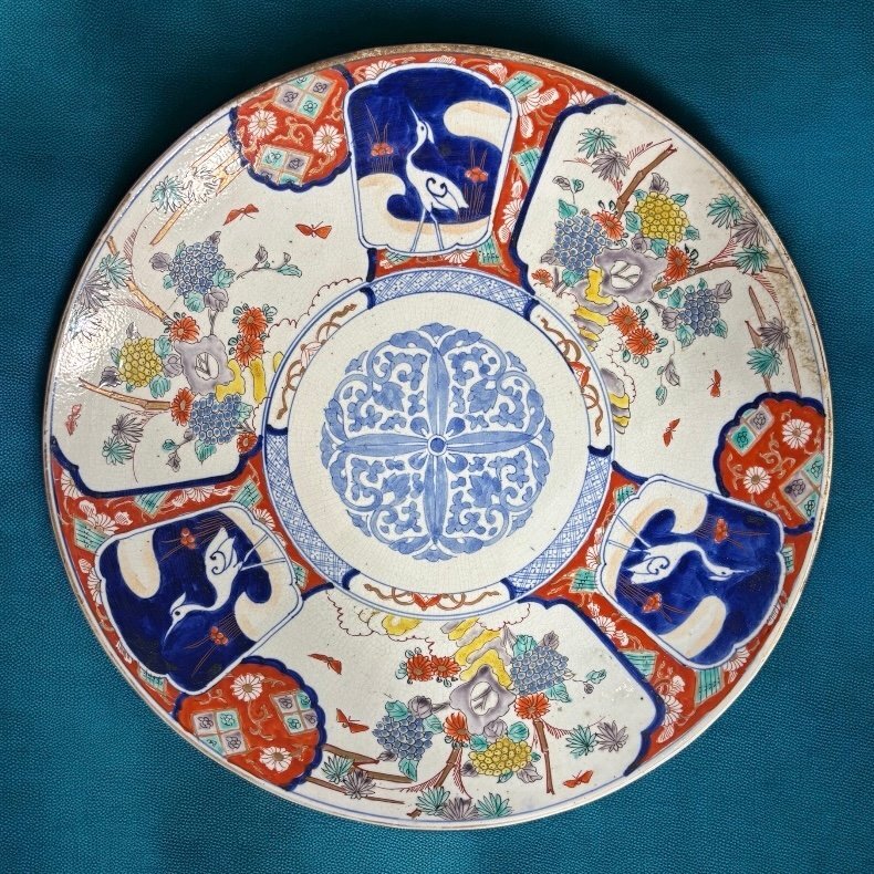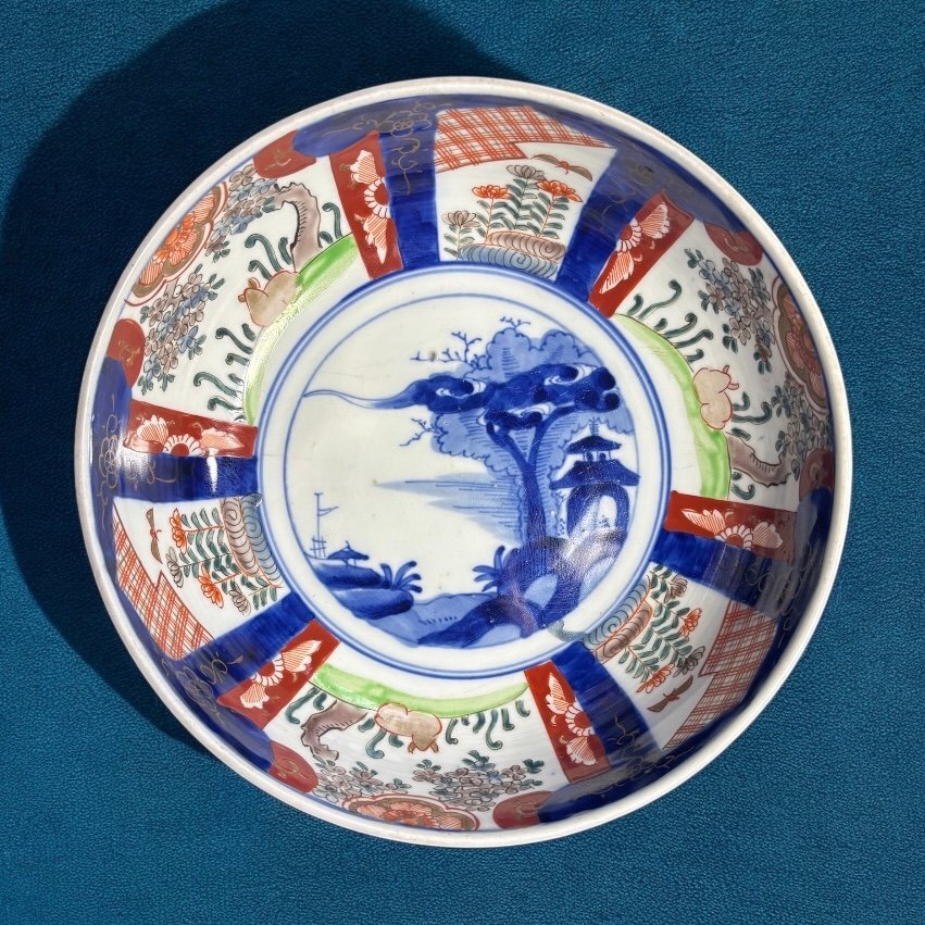 【FU10】古伊万里 大鉢 鶴亀松竹梅 柿右衛門様式 色絵 鉢 取り皿 飾り皿 和食器 明治 伊万里 陶器 骨董品 アンティーク