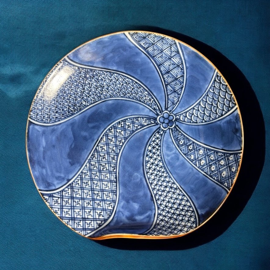 【FU10】古伊万里 微塵唐草 印判皿 直径42cm 大皿 装飾皿 染付 松竹梅 明治 大正 盛り皿 飾り皿 古美術 和食器 骨董品 アンティーク