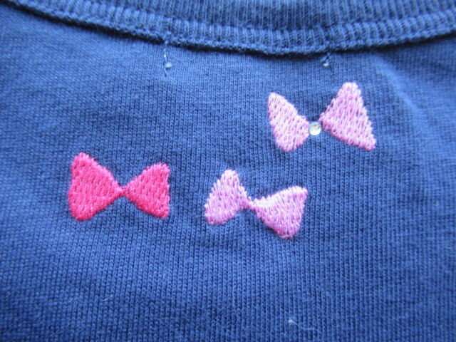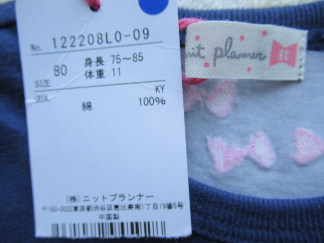 新品★KP★ニットプランナー★可愛いミミちゃん★半袖Tシャツ★80★ネイビー★smile★後ろにもリボンの刺繍★きらきらラインストーン