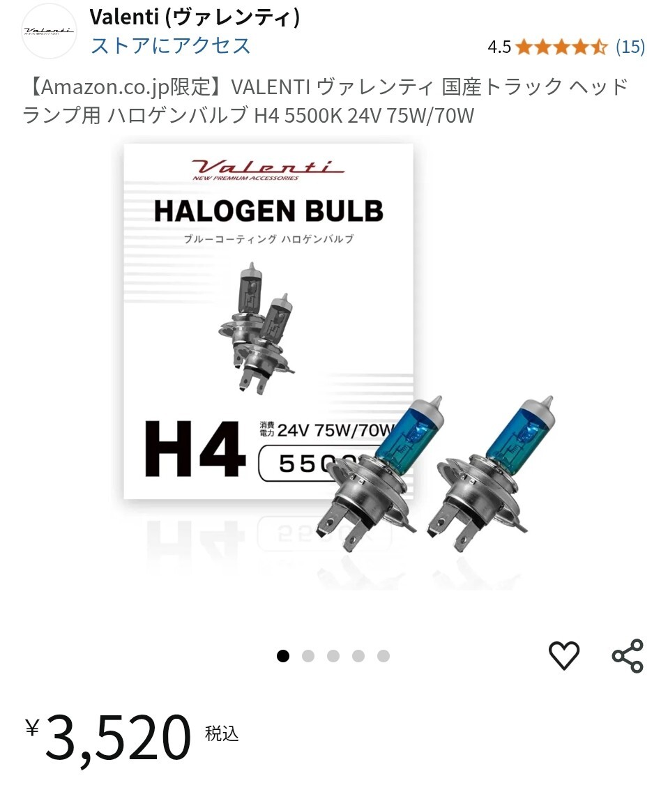 | 商品名稱 : | 新品☆定価3,520円 H4 ホワイト VALENTI ヴァレンティ 24V国産トラック用 ヘッドランプ用 ハロゲンバルブ 5500K 75W/70W 保安基準適合 |