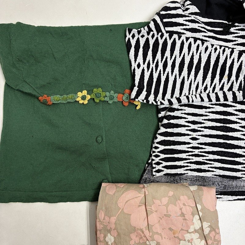 ◇商品説明◇ ※写真に写っているものが全てになります。 ※過去の保管状況は不明になります。 ※商品によってサイズ感が異なる場合があります。 ※まとめ売り商品は1点ずつの細かな検品、採寸は行っていません。■商品状態 ◇状態ランク◇C ダメージが多い商品になります。 ◇状態説明◇数点シミ、汚れあり。 グリーンのカーディガンに数か所穴あきあり。 ※写真の他、キズや汚れの見落としがある場合があります。 ※上記の内容、写真などで状態をご確認いただき、ご納得の上でのご入札をお願い致します。 ※ご使用のモニターやブラウザなどの環境により、実物のお色と異なる場合がございます。■送料 落札商品の同梱発送 等 ※商品の発送は、佐川急便で行います。 ※配送会社や送料の変更は一切お受けできません。予めご了承の上ご入札をお願いいたします。 ◇同梱について◇当ストアは、同梱発送は行っておりません ◇離島送料について◇離島の方は、落札後に送料および中継料金が発生いたします 高額となる場合もございますのでご了承ください ■お取引の方法について 当ストアでは落札日より 5日以内の取引ナビへのご入力 、7日以内のご入金 をお願い致します。 ご入金後ご連絡が取れないお客様については商品保管期限は、12日間 となります。 この期限を過ぎてしまった場合、落札者様都合でのキャンセルとさせて頂きます。 (後日返金対応が出来ませんのでご注意お願いします) 取引ナビ入力後の入金の確認や発送の案内は取引メッセージでのご連絡となります。 ◇評価◇当ストアは評価は一切行っておりません ■商品の発送について 商品の発送につきましては、入金確認後 5営業日以内に発送 させて頂きます。 土日祝は、休日の為オークションに関する連絡、発送等全般は行っておりません。 商品の安全を考え厳重に梱包いたしますが、リサイクルの観点から梱包材は中古の箱や詰め物を利用させて頂いております。 梱包が気泡緩衝材に巻いての簡易的梱包になる場合があります。 折りたたんでの発送になる場合もございます事ご了承ください。 送料はお客様負担での送料元払いの発送となります。 ◇直接引取商品有可能只能自取,自取費用相當高,請查看頁面確認 りについて◇ 商品タイトル記号「★」東京事業所に関しては直接引取商品有可能只能自取,自取費用相當高,請查看頁面確認 りは行っておりません。 他タイトル記号の事業所に関しては下記の通りになります。 当ストアにお越しになる当日、到着後は車から降りずに必ずお電話をくださいますようお願い申し上げます。 公共交通機関や自転車でお越しの場合にもお手数ですがご連絡下さい。 フォークリフトや大型トラックの出入りがあり安全確保のためご協力をお願い致します。■注意事項など ・ ノークレーム、ノーリターンをご理解頂ける方のみご入札下さい。 お客様にとってはリスクの高い買い物になってしまうかと思いますが、 ノークレームノーリターンとの記載にも関わらず専門的な部分を指摘し、トラブルに発展するケースもある為、注意事項として掲載しております。 ご理解頂けない場合はご入札をご遠慮下さい。 出来る限り現品に近い色の写真を掲載する様にしておりますが、パソコンモニターや環境により色合いが異なる場合がありますので、予めご了承下さい。 入札する際にはよく説明文を読んでいただくようお願い致します。不明な点は遠慮なくご質問ください。また、落札後の商品に関するご質問はご遠慮ください。 ※営業時間は9:00~17:00となります。営業時間内の対応になります。 ※毎週 土曜日・日曜日・祝日は休日となりますのでメッセージ対応行っておりませんのでご了承ください。 ※問い合わせは 080-7981-7421 までお願い致します。(緊急の場合のみお電話にて対応させて頂きます。) こちらの商品以外にも多数出品致しておりますので宜しければご覧ください。