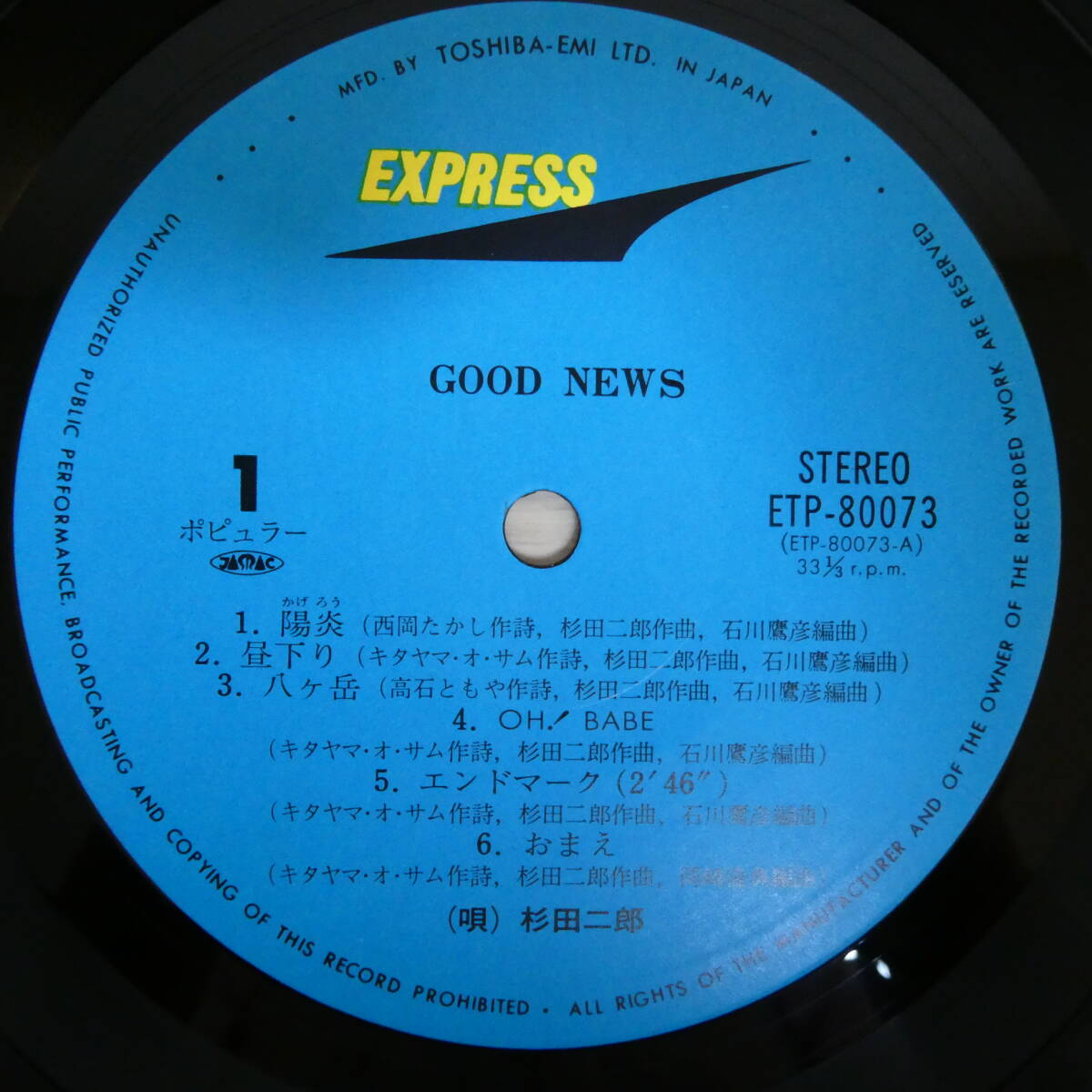 | 商品名稱 : | 01734【LP 帯付】「杉田二郎 / グッド・ニュース / ETP-80073」美品 |