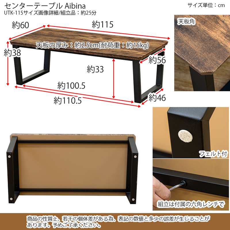 | サイズ | (W)幅115×(D)奥行60×(H)高38cm 天板の厚さ:約2.5cm |