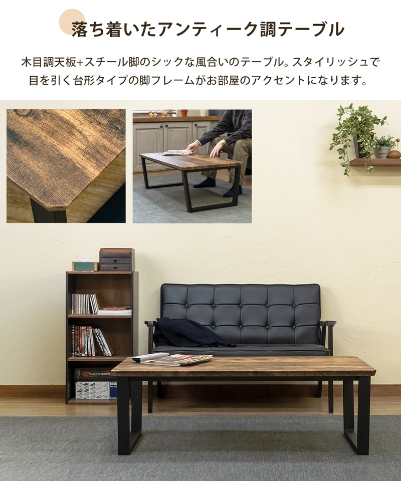 | 商品名稱 : | テーブル デスク 115cm×60cm おしゃれ 平机 文机 センターテーブル 木目柄天板 スチール脚 台形脚 座卓 ローテーブル |